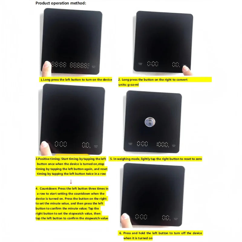 Household electronic kitchen scale, high-precision digital coffee scale with timer, small platform scale for baking food, portab